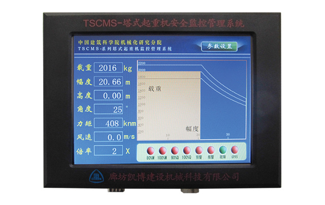 實時顯示監(jiān)控塔機(jī)高度、幅度、起重量、回轉(zhuǎn)角度、環(huán)境風(fēng)速及倍率等工作信息,對危險動作提供預(yù)警報警及控制輸出。