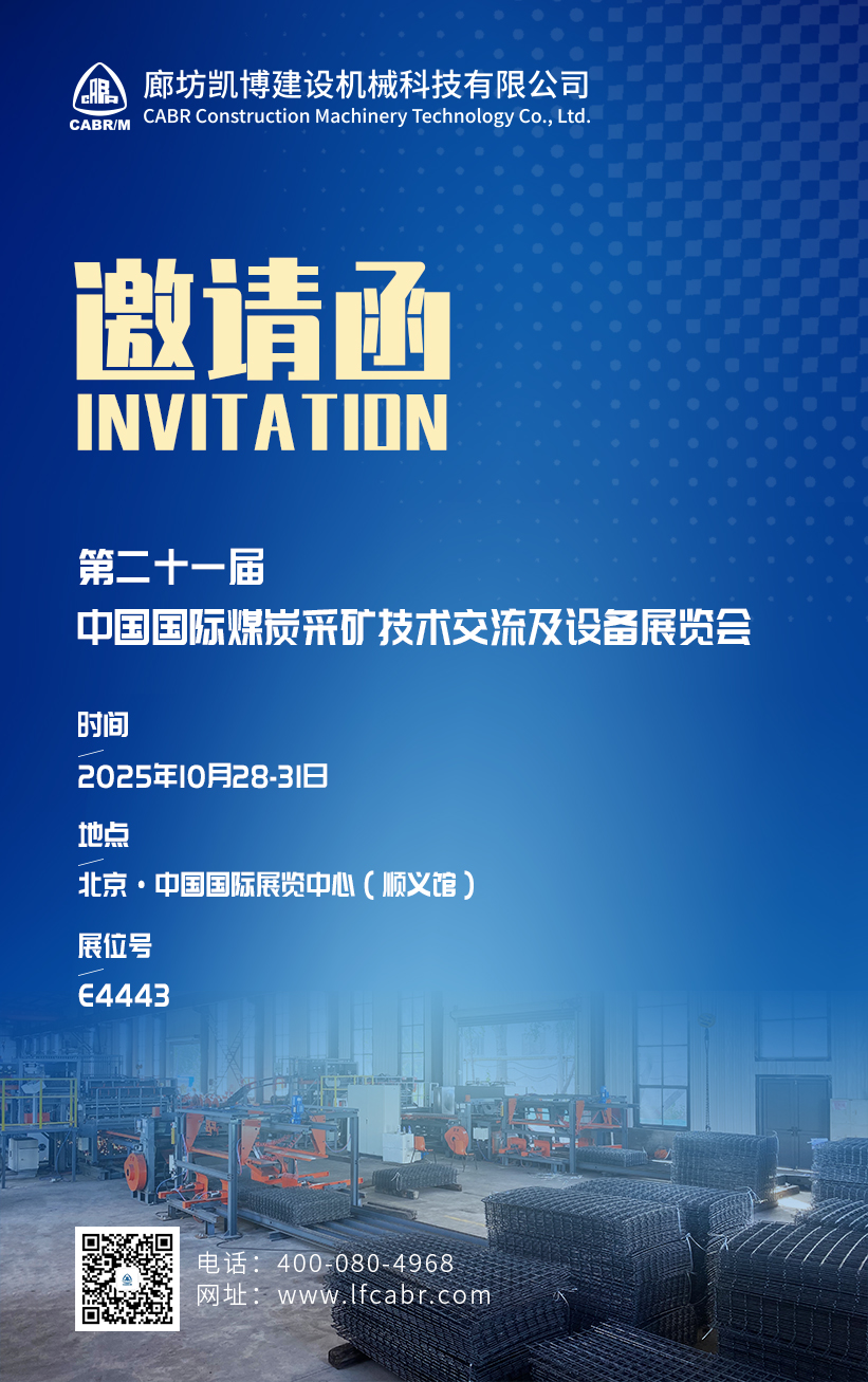 ????第二十一屆中國國際煤炭采礦技術(shù)交流及設(shè)備展覽會,將于2025年10月28日-31日在北京中國國際展覽中心(順義館)舉辦!廊坊凱博建設(shè)機(jī)械科技有限公司(以下簡稱“凱博科技”)邀您相約北京!