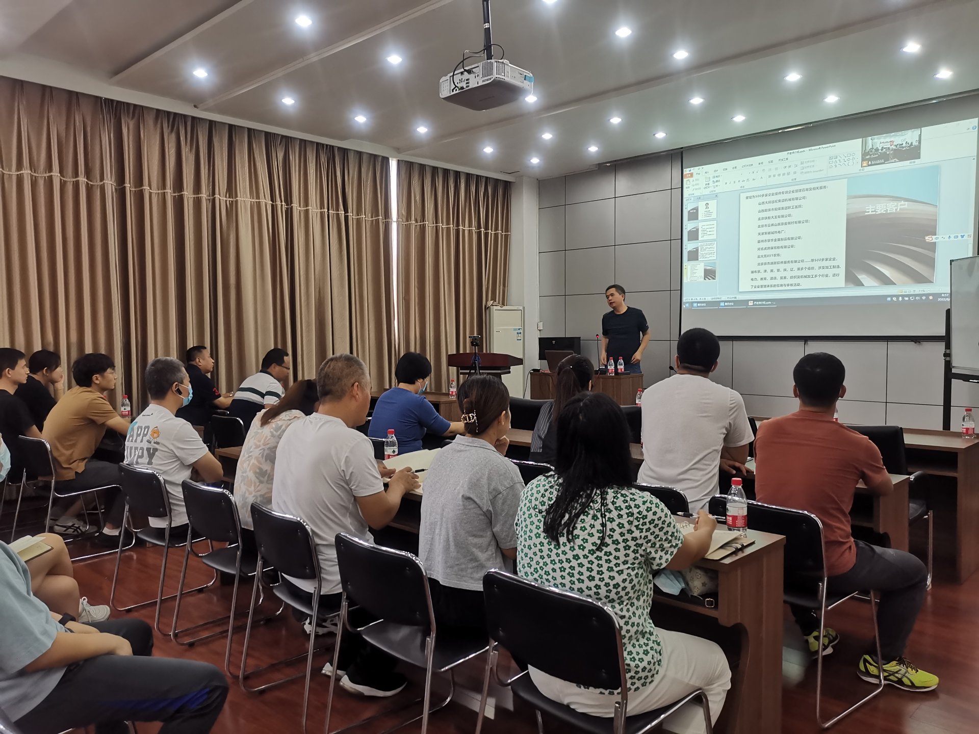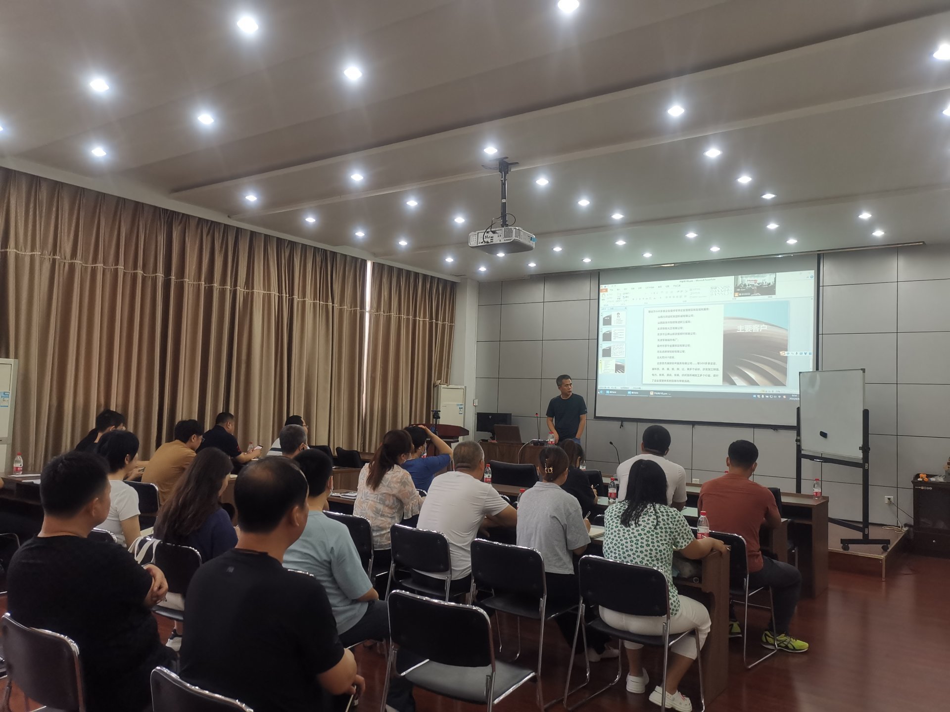 培訓(xùn)前物資質(zhì)量部部長(zhǎng)曹國(guó)巍介紹了齊永合老師的工作履歷,以及大陸航星在企業(yè)管理模式設(shè)計(jì)、人力資源體系中薪酬和績(jī)效、營(yíng)銷、生產(chǎn)管理、資本經(jīng)營(yíng)等領(lǐng)域的成功培訓(xùn)經(jīng)驗(yàn)。