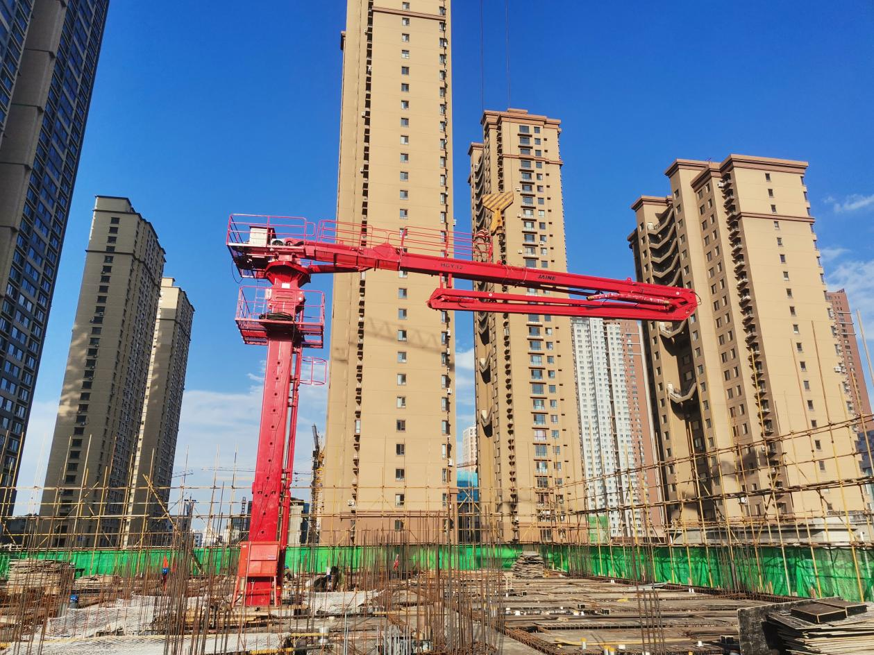廊坊凱博建設(shè)機(jī)械科技有限公司生產(chǎn)的 JAINE建研 HGY32和HGY24電梯井爬升式布料機(jī)成功在沈陽(yáng)旭輝鉑悅·公望項(xiàng)目中順利安裝并投入使用。