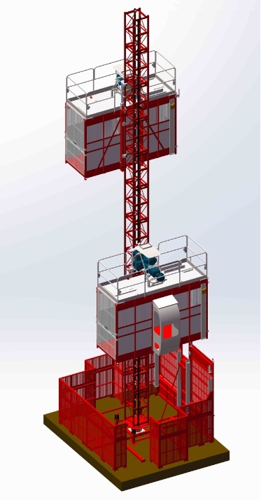 單軌雙籠高速施工升降機(jī)(額定運(yùn)行速度最高可達(dá)100m/min),主要用于超高層建筑主體施工工程。